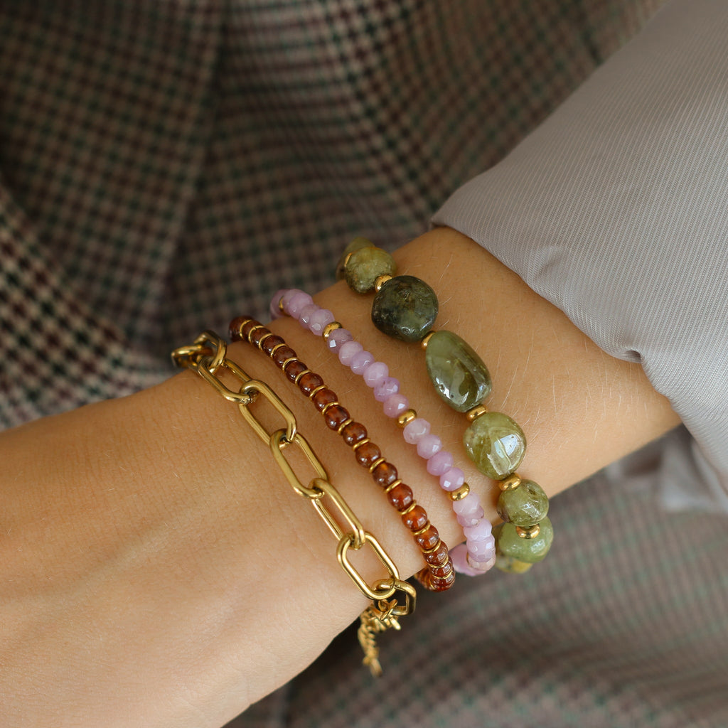 En Acier inoxydable et pierres naturelles, ce bracelet ne craint pas l'eau, la douche. Le bijou parfait pour vous suivre tous les jours sans inquiétude.