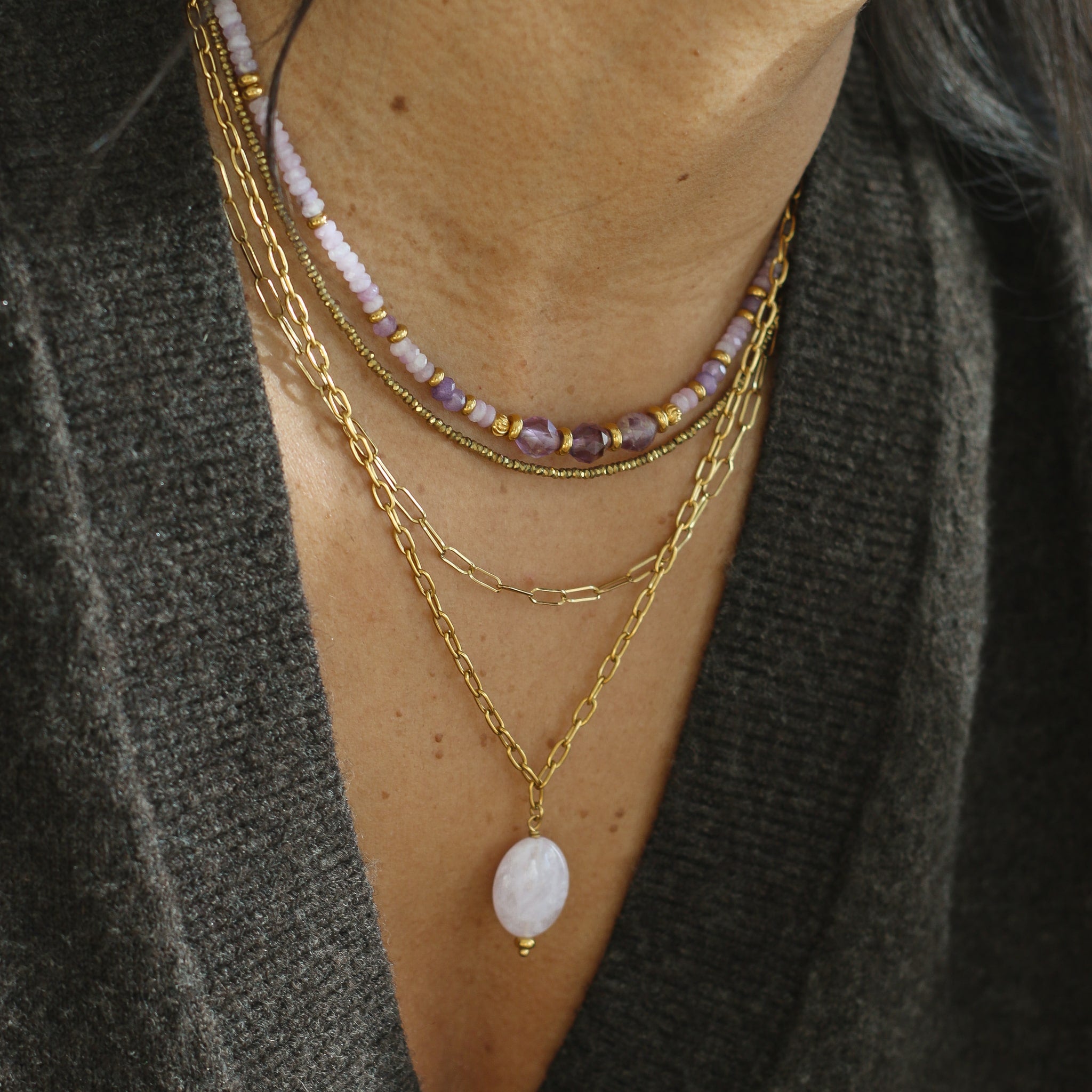 En Acier inoxydable et pierres fines naturelles, ce collier ne craint pas l'eau, la douche. Le bijou parfait pour vous suivre tous les jours sans inquiétude.