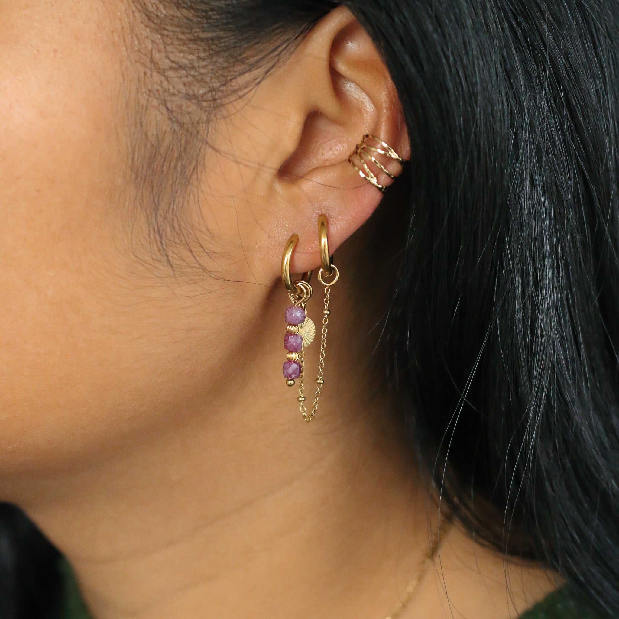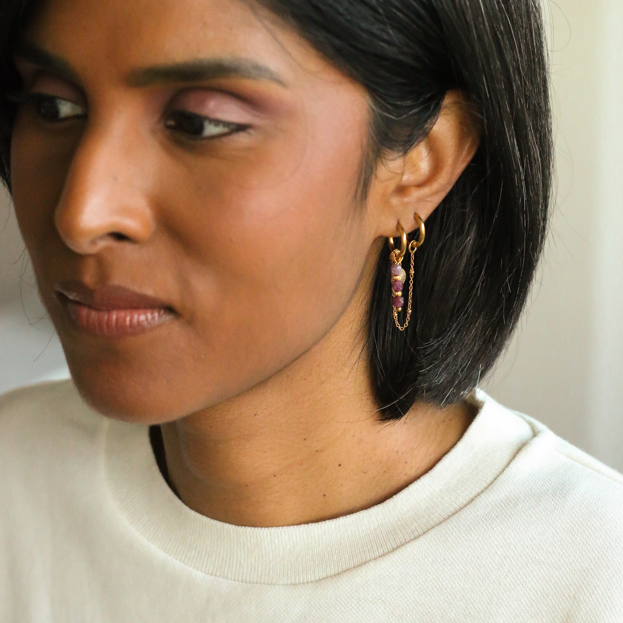 Vous pouvez porter ces boucles d'oreilles de plusieurs manières différentes, avec ou sans les pierres.