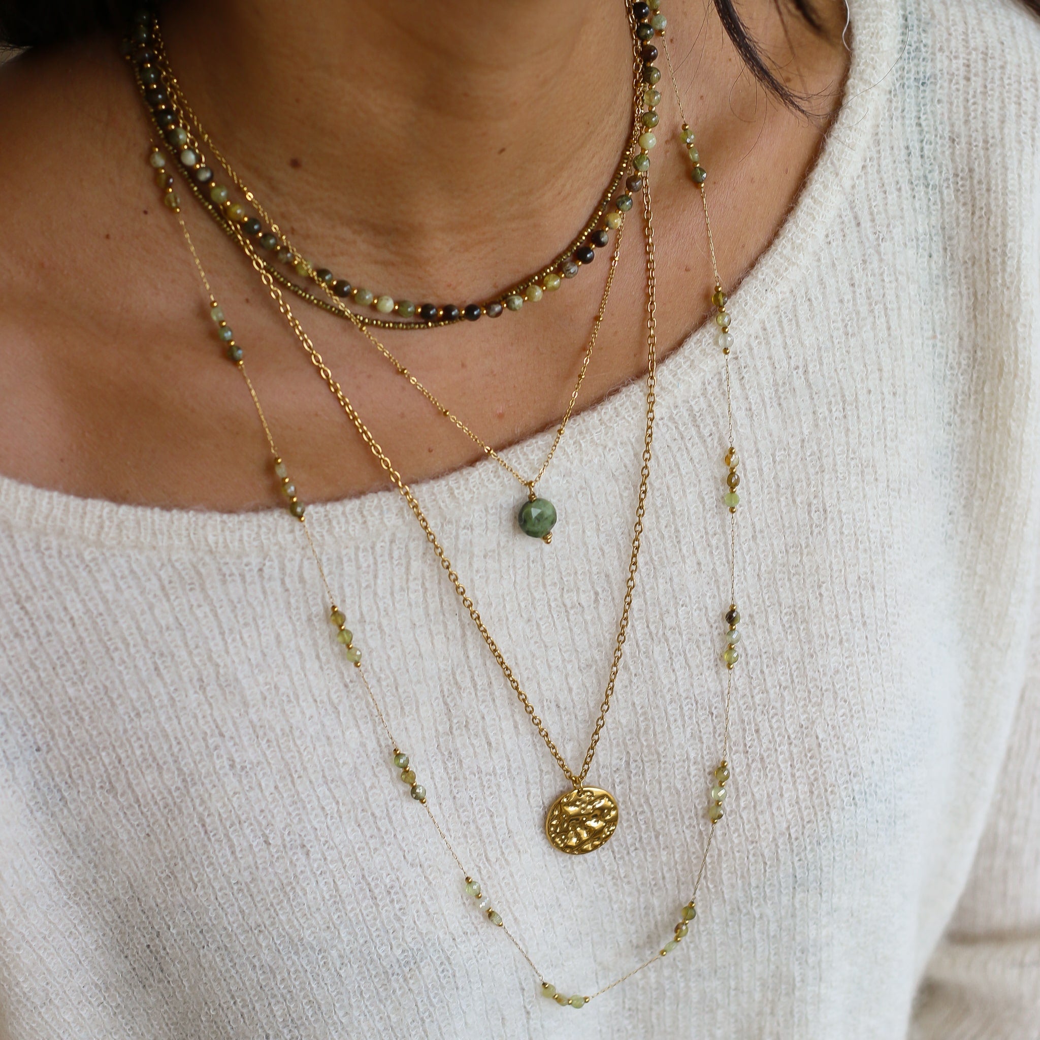 En Acier inoxydable et pierres fines naturelles, ce collier ne craint pas l'eau, la douche. Le bijou parfait pour vous suivre tous les jours sans inquiétude.