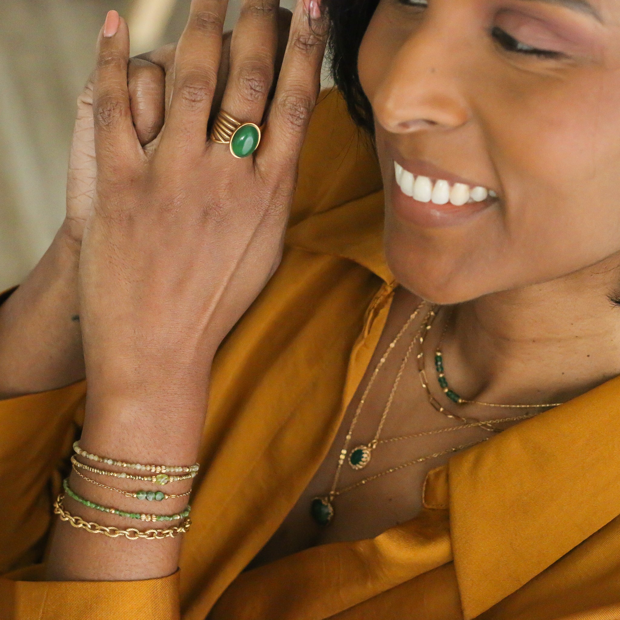 Les Pierres fines sont naturelles et donc toutes différentes et uniques. L'apparence de la pierre du bijou que vous allez recevoir peut donc varier légèrement de la photo.