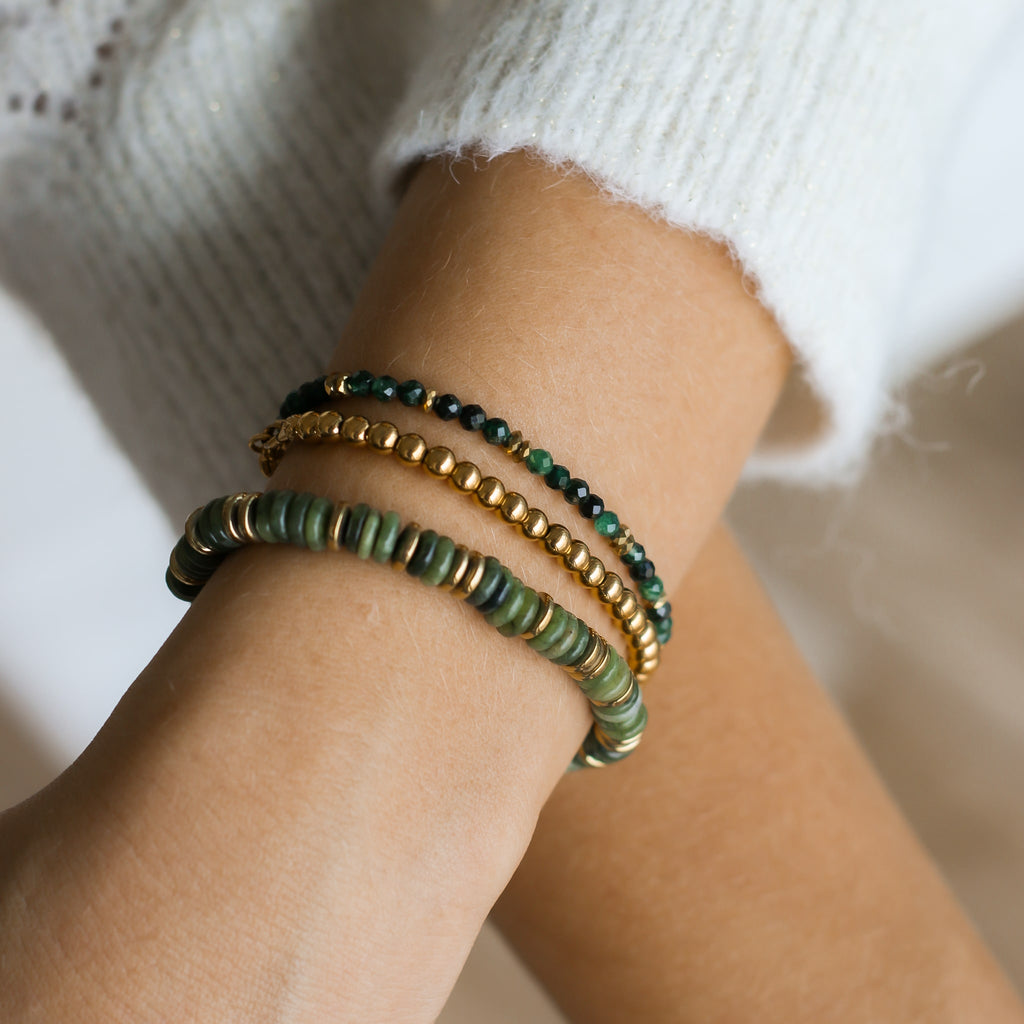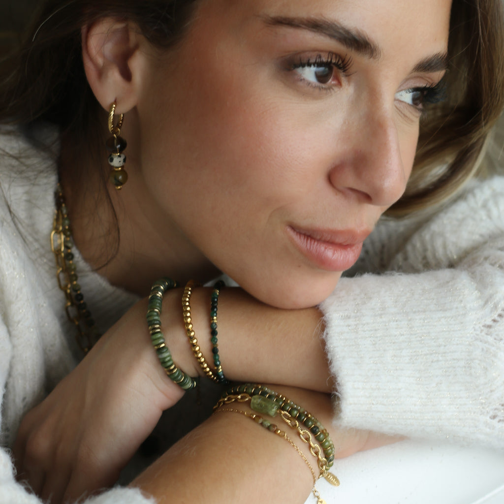 En Acier inoxydable et pierres naturelles, ce bracelet ne craint pas l'eau, la douche. Le bijou parfait pour vous suivre tous les jours sans inquiétude.